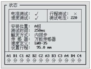 答:選擇【測試】-【合閘測試】,高壓開關測試儀液晶顯示屏的最下方有12斷口的實時狀態顯示。屏幕顯示如下圖: